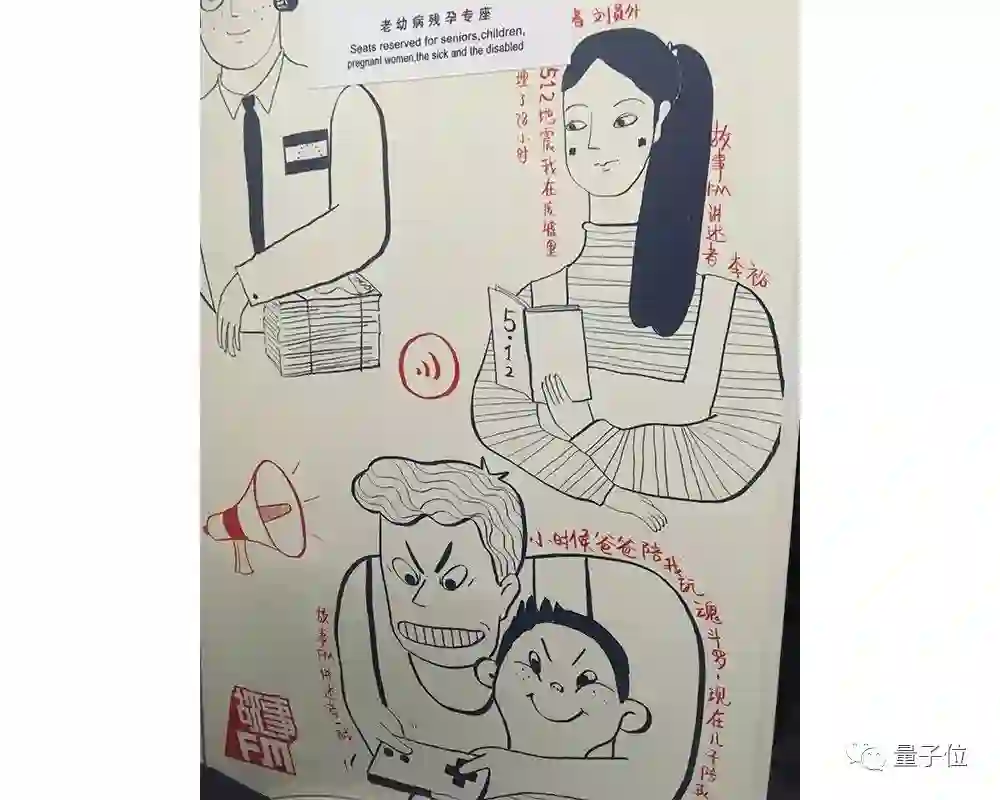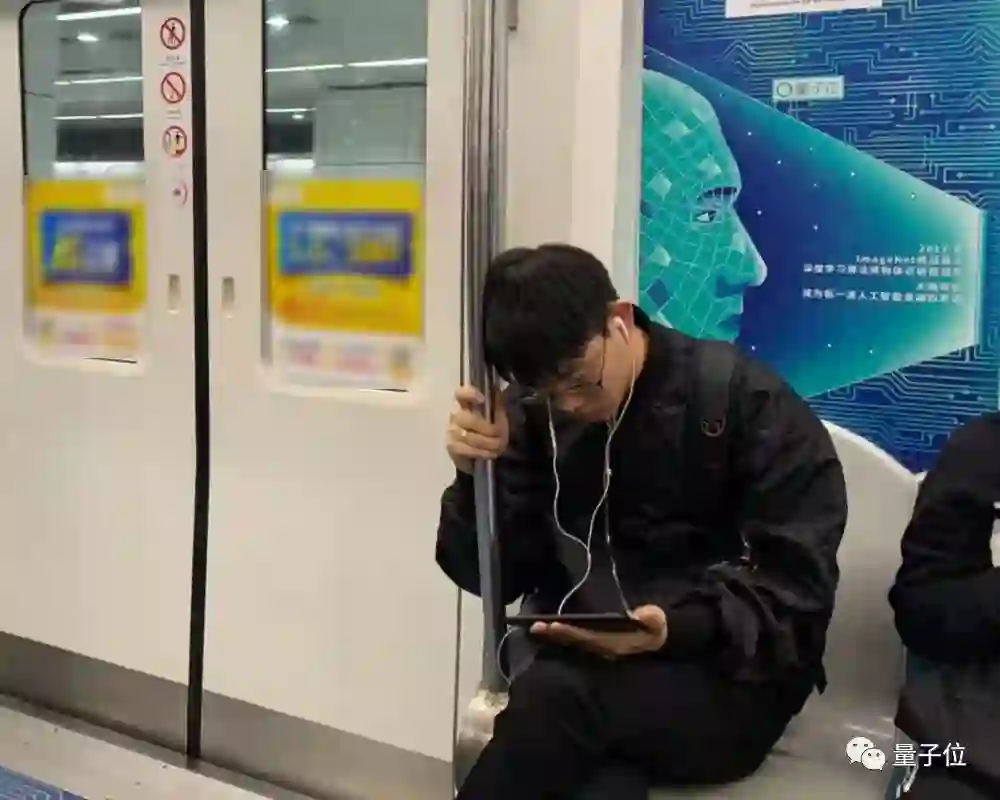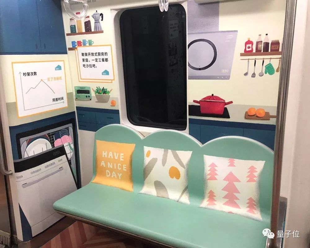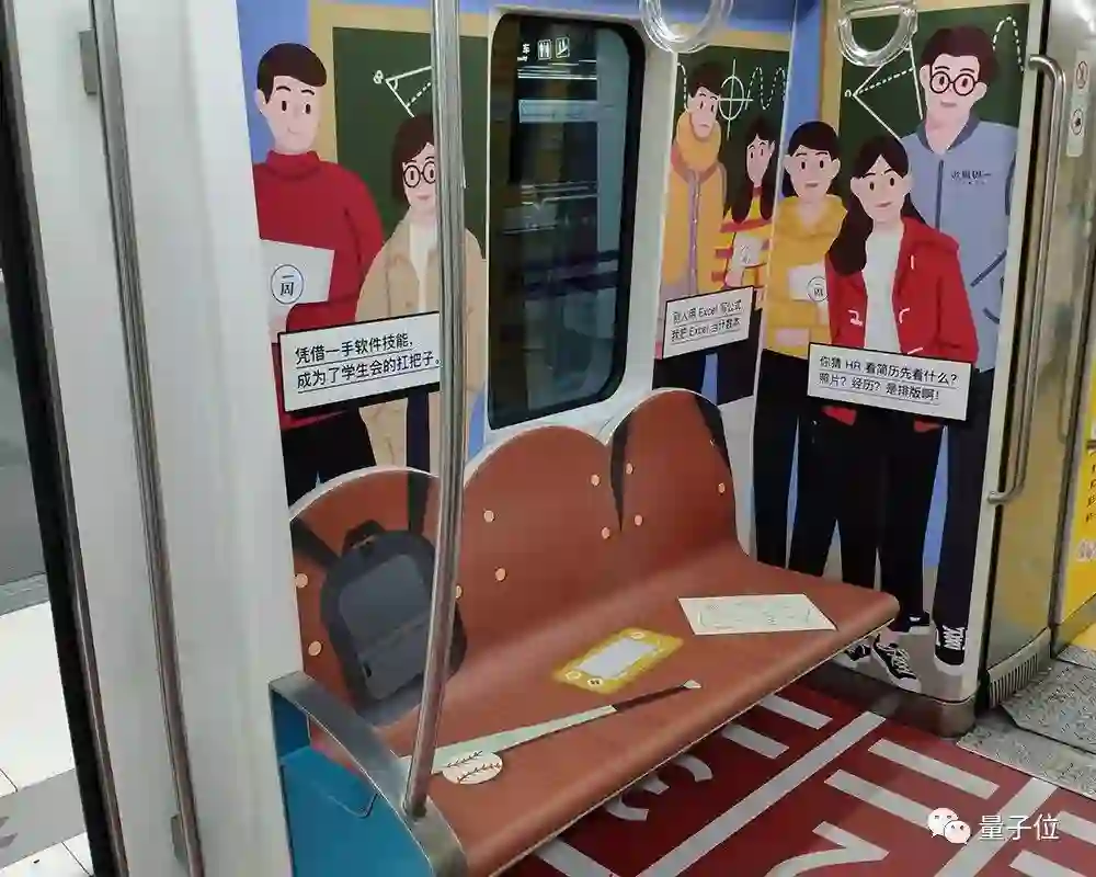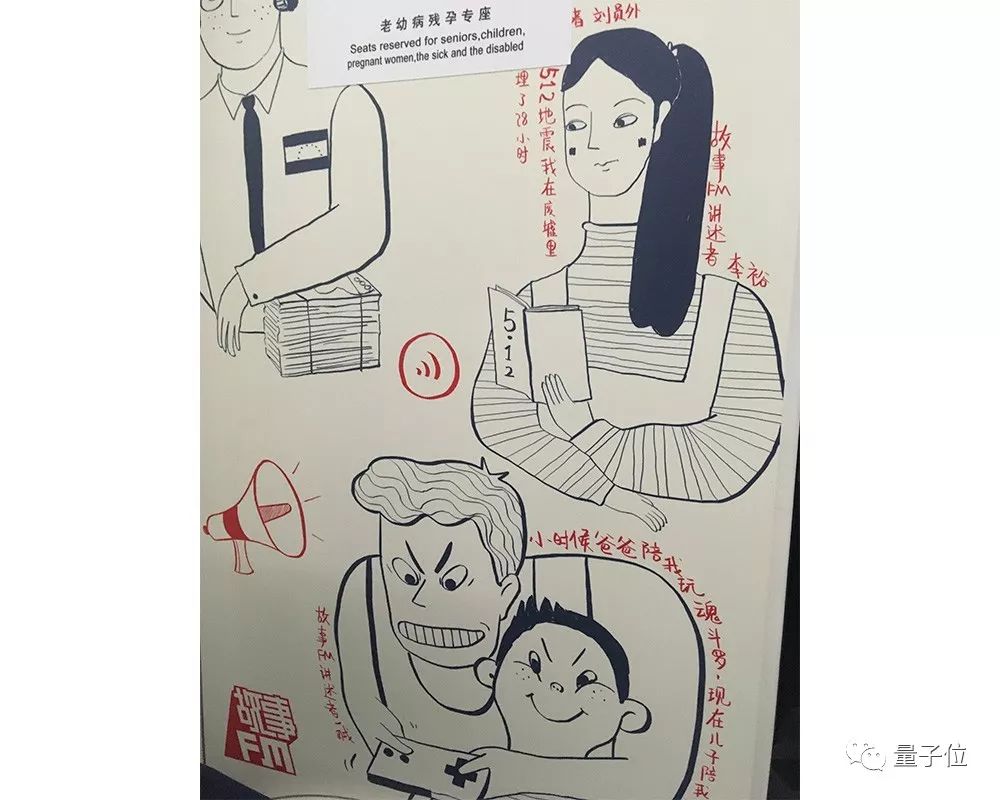 在地铁展览的筹备阶段,我与轻芒的同学接触,讨论量子位的内容定位,空间创意,插画画面要呈现的人工智能应用,再到搜集空间中的文案数据证明,也自己坐地铁实地查看量子位所在车厢的过道位置的构造。经过中间无数次沟通细节到最终执行,历经近半年,对我而言必须要第一天看到这个成果。