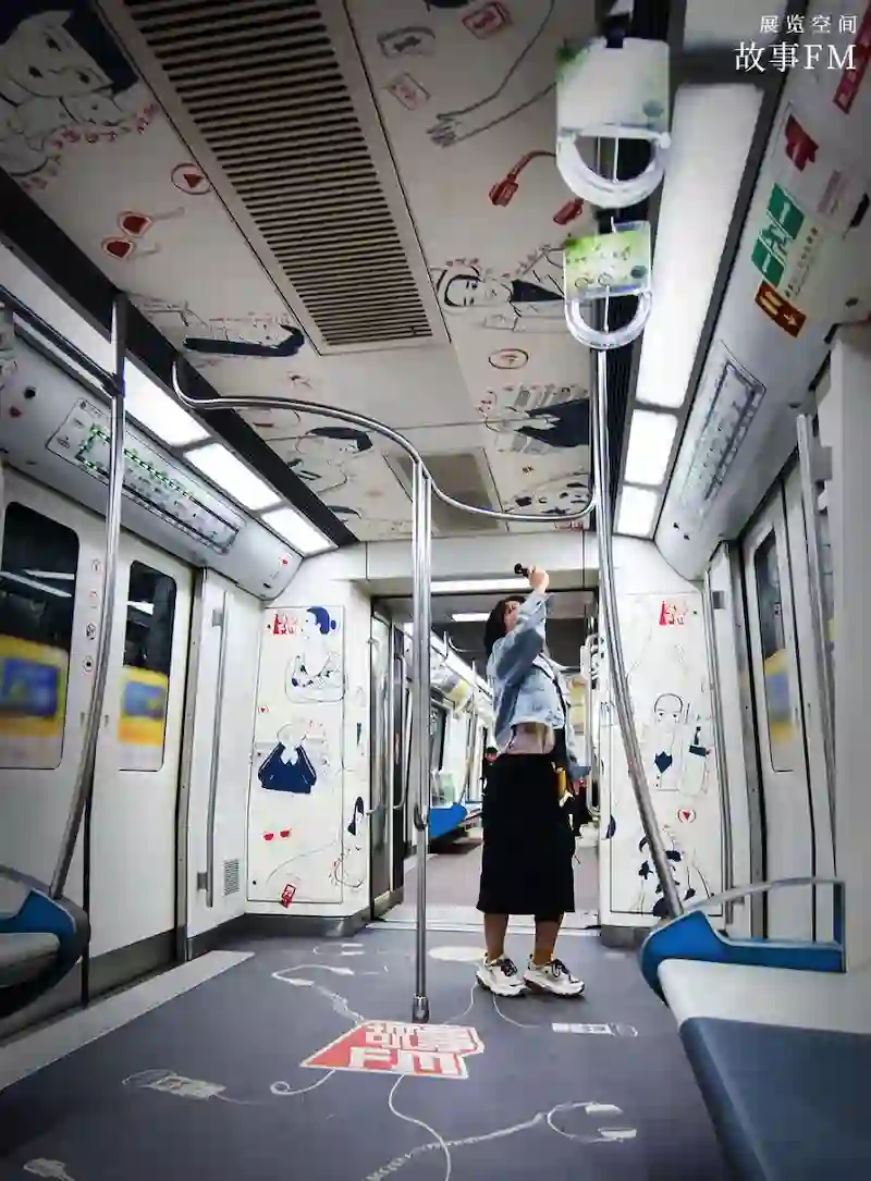 在追车群里被大伙的热情鼓动,住的地方离 10 号线的站点也近,临时起意去追车。刚得知消息的我,完全没办法想象在地铁看展的感觉,但追上车后一直从头看到尾,有种出乎意料的美感和惊喜,太美好了。冰冷的地铁有了生命,本「社畜」觉得此刻我像个人被感动。