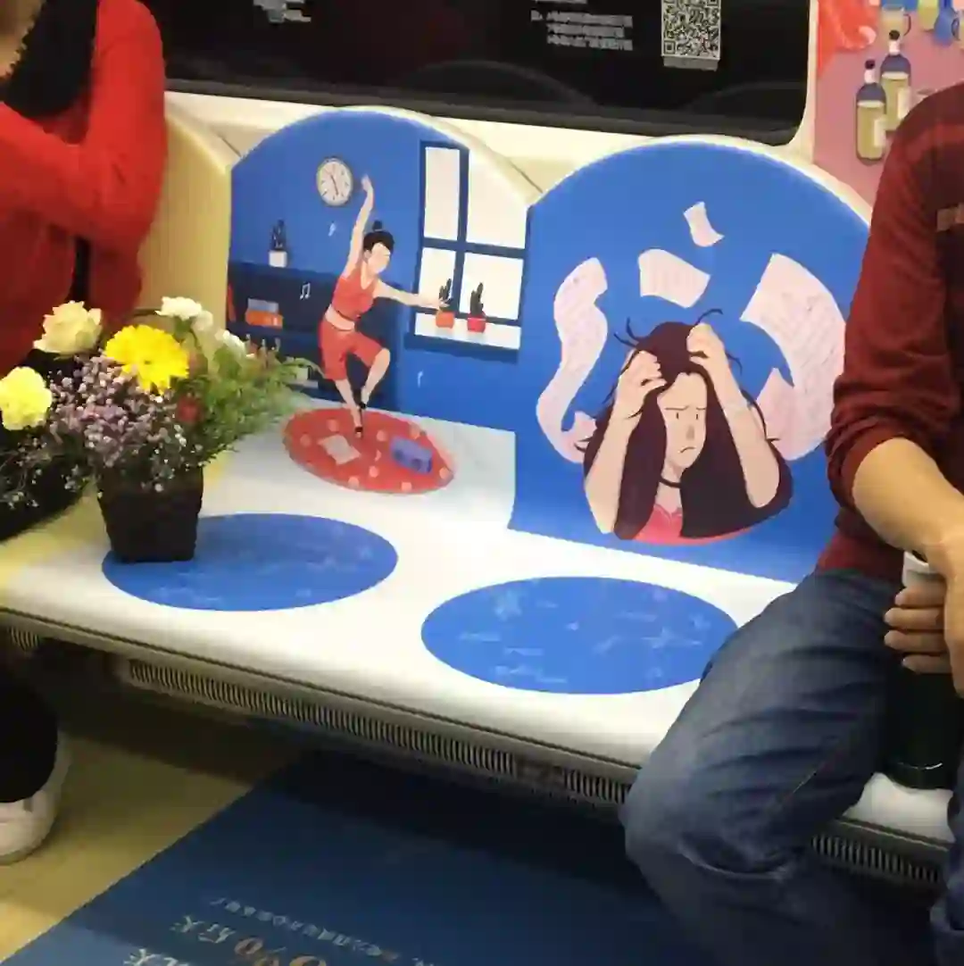 在车厢里,我想象了好多,慰藉和温暖?一种力量?或者只是浅浅一笑,都很美好。一周进步的人感觉很鲜活,车顶设计成人都盯着你看,有一种很温暖的力量。