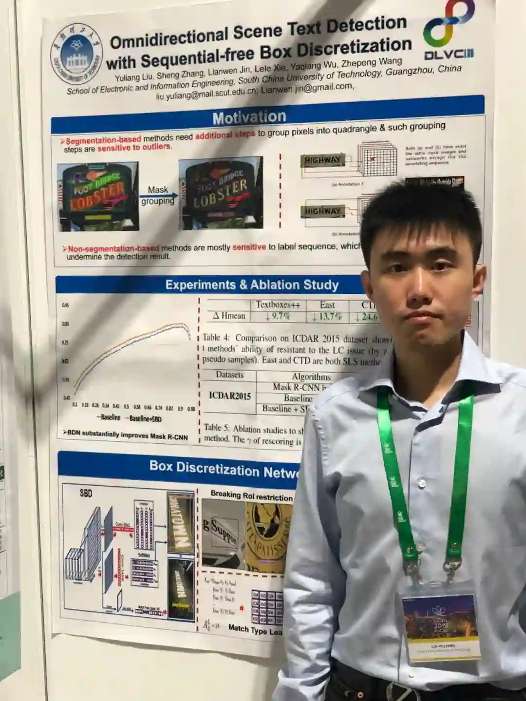 大家好,我是刘禹良,华南理工大学(广州)本科(2012.9-2016.6),华南理工大学博士(2016.9-2020.8),师从金连文教授,澳大利亚阿德莱德大学访问博士生(2019.3-2020.5)与博士后(2020.5-2020.11),合作导师沈春华教授,香港中文大学博士后(2021.1-2022.1),合作导师林达华教授,2022年3月起任华中科技大学人工智能与自动化学院研究员。本人曾在知名学术会议和期刊发表或录用论文30余篇,过去5年以一作在TPAMI,IJCV,TIP,CVPR等国际顶刊顶会发表论文10篇,共同一作5篇,通讯作者一篇。担任中国图象图形学报专题编委会编委,国家自然科学基金重点项目,国家重点研发计划主要研发成员,曾获CSIG优秀博士学位论文奖;曾获CVPR满分评审论文;曾3次受邀CCF A类国际顶会口头演讲;曾获ICDAR Robust Reading Challenge等6次国际竞赛冠军1次金奖(第六届互联网+)四次担任团队第一成员;受邀担任TPAMI,CVPR等多个顶级会议与期刊的资深程序委员会委员及审稿人,积极服务开源社区,开源项目10余项。创建多个国际知名数据集及合作举办多项国际竞赛如SCUT-CTW1500, ICPR2018-MTWI, ICDAR2019-ArT, ICDAR2019-LSVT, ICDAR2021-ICT, 和ICPR2022-MSR。