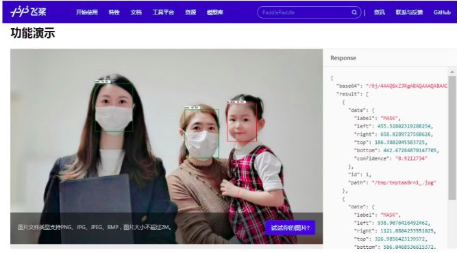其实早在2月13日,百度就在业内首个宣布开源口罩人脸检测及分类模型,该模型可以有效检测密集人流区域中的所有人脸,并判断其是否佩戴口罩,目前已通过飞桨PaddleHub对外开源。