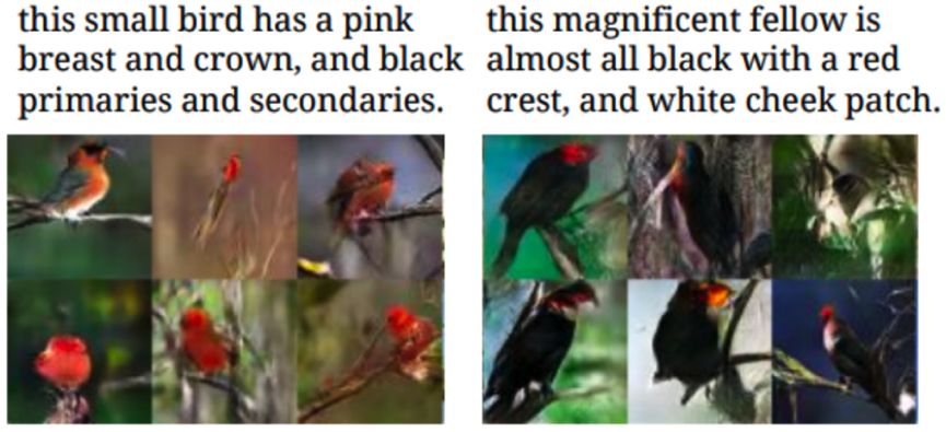 图6根据文字生成图片,引自Reed等人