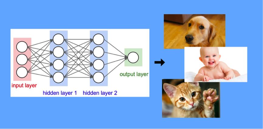 首先让我们回顾一下深度学习的发展。如图1所示,这是一个神经网络的简图。神经网络是由相互连接的神经元所组成。神经元们被组织分层,因此,我们将他们分为在中间的隐层,输入(最左)以及输出层(最右)。每一条边,都是有权重的;每一个神经元,都是与之相连的上一层的神经元,通过权重,加和其值,再通过一个非线性的激活函数(比如:sigmoid 或ReLu)得到的。正如图1所示,第一隐层的神经元是通过对输入层的神经元权重求和后,使用ReLU函数得到的。在这里,激活函数可以引入非线性。这样可以使神经网络对更复杂的情况建模(单个线性层可以达到多个线性层组合的效果)。