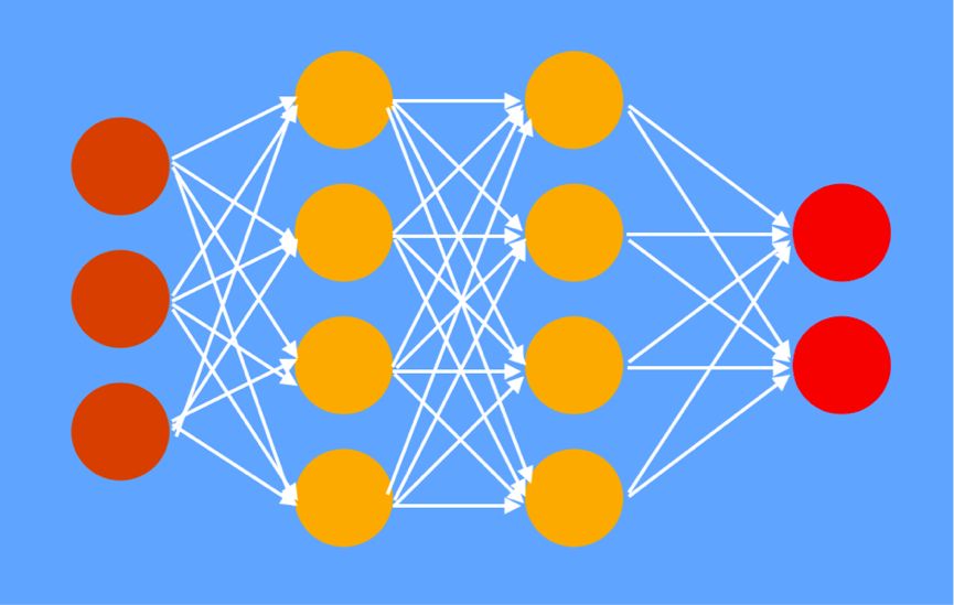 图1神经网络,棕色的是输入,黄色的是中间层,红色的是输出