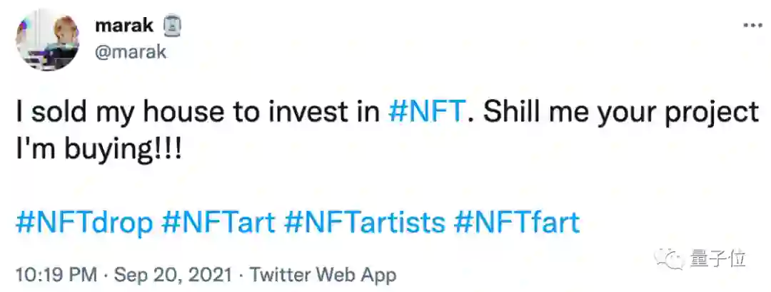 2021年他在推特上称,自己把房子都卖了,押宝NFT。