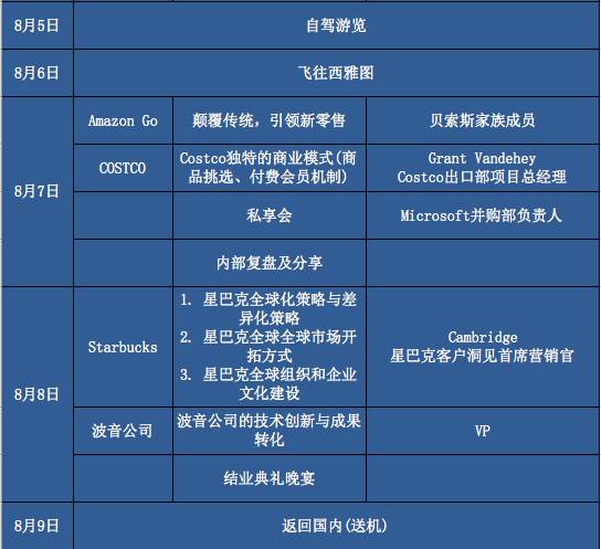 引领新零售的AmazonGo、拥有独特商业模式的Costco、全球化战略布局的星巴克……对新模式的学习等也是本次游学的亮点。