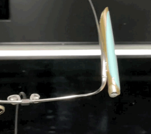 吸附在右侧眼镜上的这块智能眼镜的本体,机身重量30g、镜片重6.6g,厚度1.3mm。