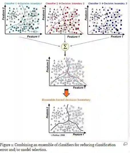 假设各弱分类器间具有一定差异性(如不同的算法,或相同算法不同参数配置),这会导致生成的分类决策边界不同,也就是说它们在决策时会犯不同的错误。将它们结合后能得到更合理的边界,减少整体错误,实现更好的分类效果。