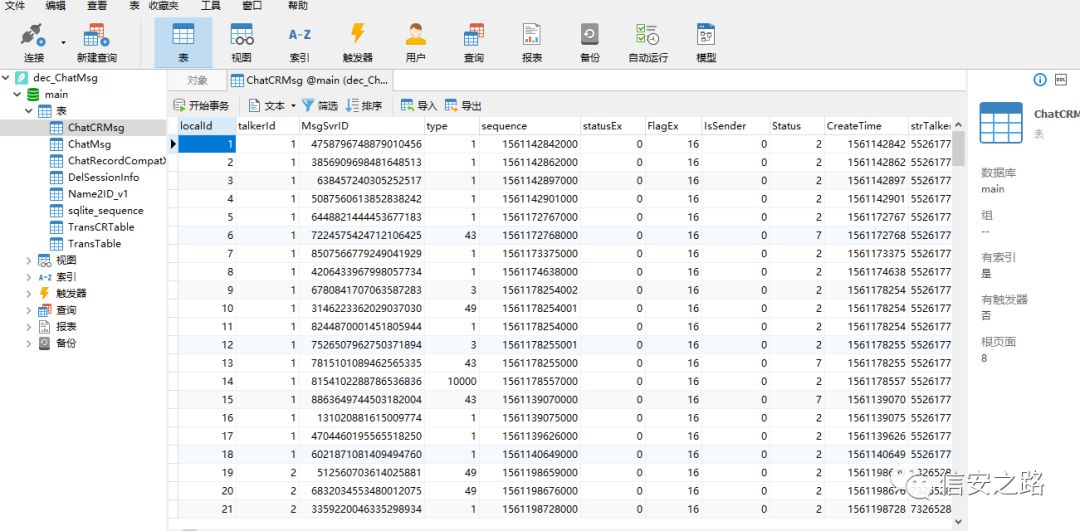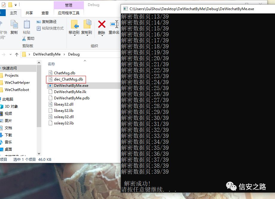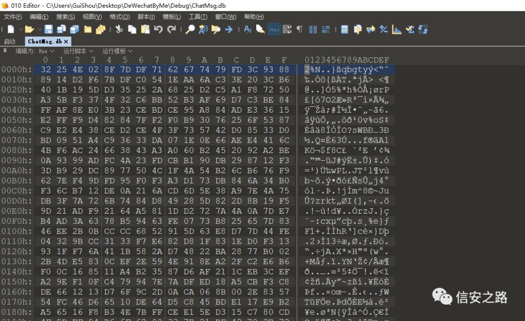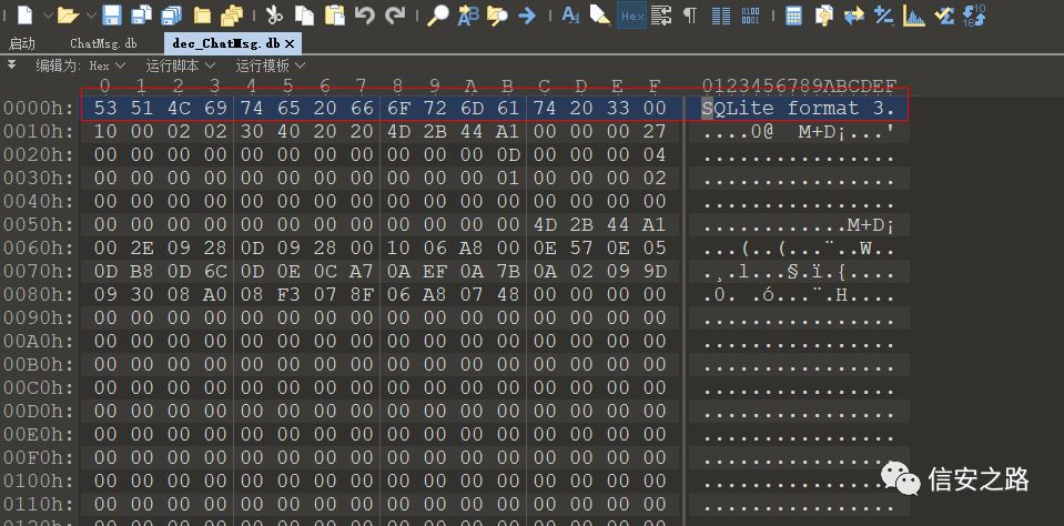 最后生成的 dec_ChatMsg.db 就是解密出来的文件,对比一下解密前后的文件