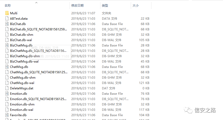 微信的数据库使用的是 sqlite3,数据库文件在C:\Users\XXX\Documents\WeChat Files\微信账号\Msg这个路径下,