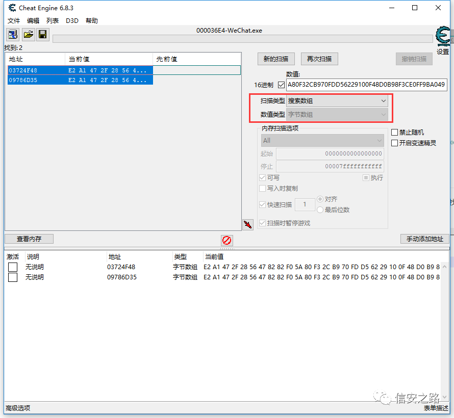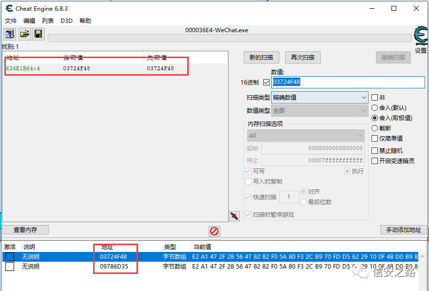 直接在 CE 中搜索之前找到的密钥