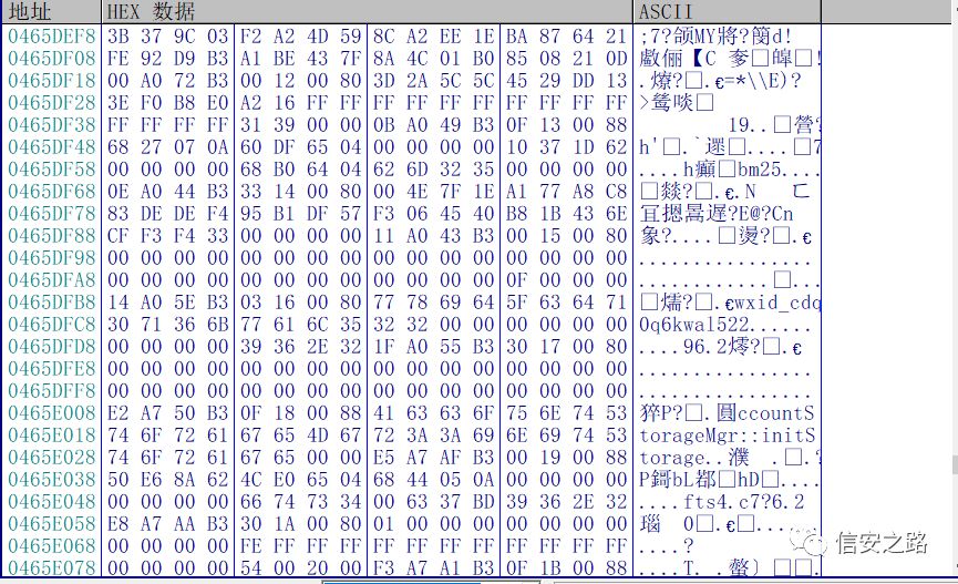 这个基址以指针的形式保存了微信数据库的密钥,这个地址就是我们要的微信密钥的基址了。