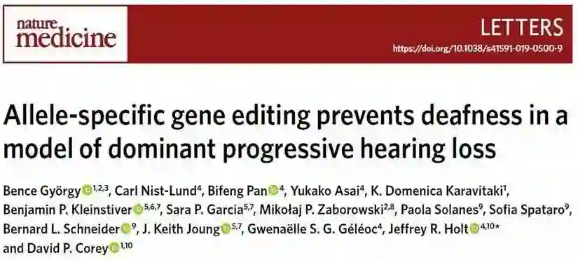 [1]Bence Gyorgy et al Allele-specific gene editing prevents deafness in a model of dominant progressive hearing loss.