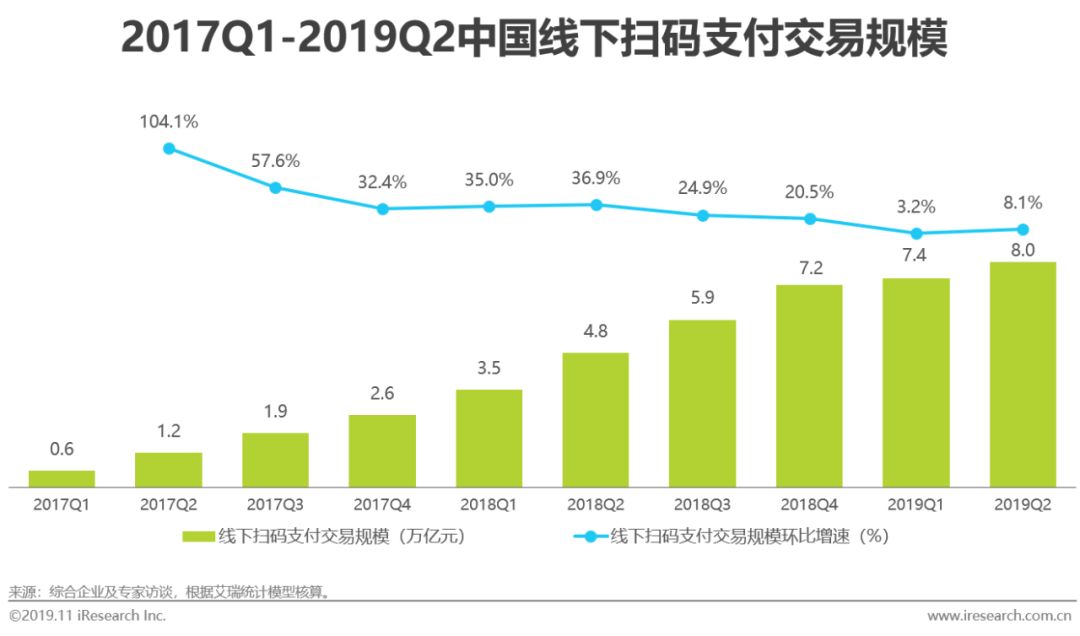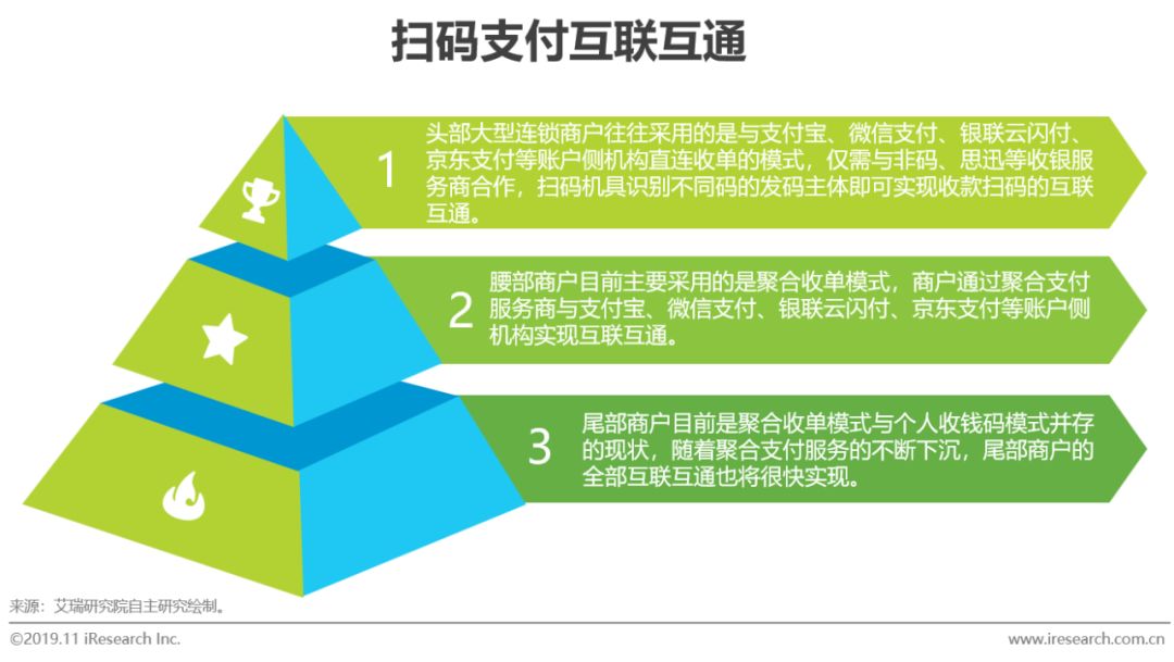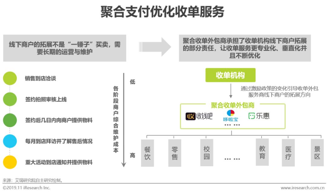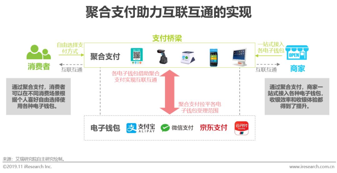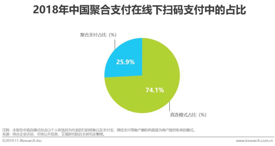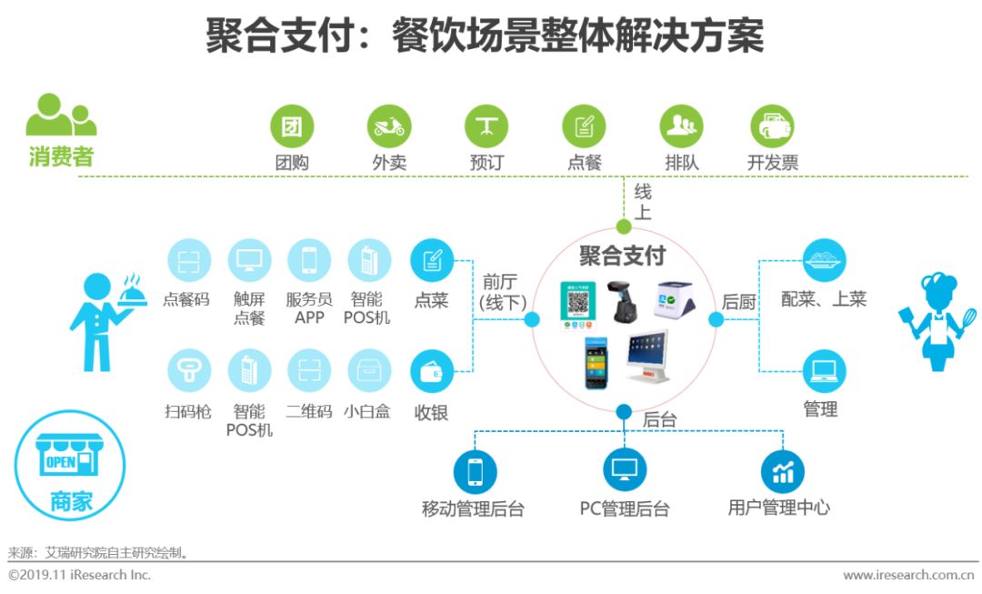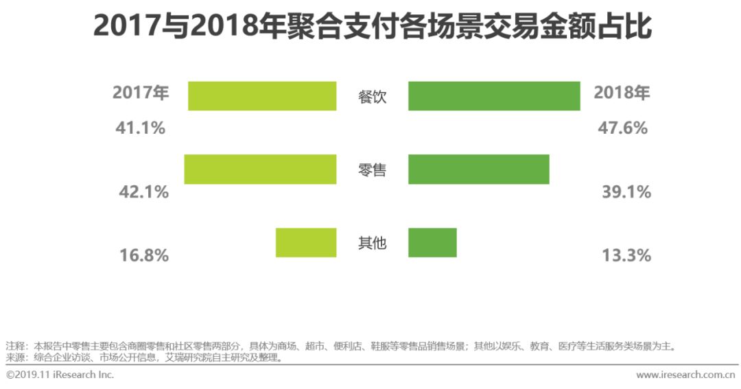 商户渗透率:2019年聚合支付覆盖的商户数量为2307万家,商户渗透率达到46.1%。