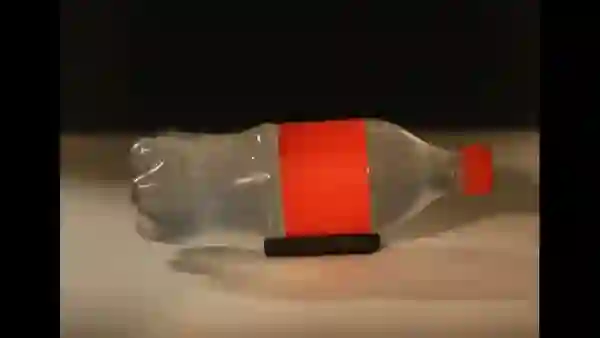 现在用这道激光子弹去射这个可乐瓶,我们会看到什么呢?