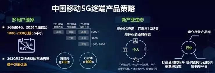 同时,中国移动将推动5G芯片和终端价格快速下探,到2020年底推出1000-2000元档5G手机,方便用户换机。