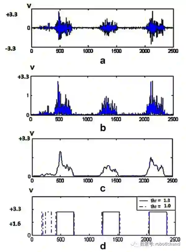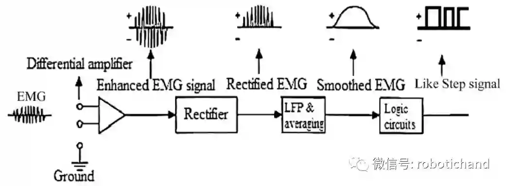 EMG信号采集后经过增强、整流、平滑和数字化等过程。