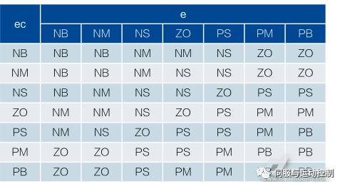 PID参数的设定是靠经验及工艺的熟悉,参考测量值与设定值曲线,从而调整Kp、Ki和Kd的大小。模糊控制规则是用于修正PID参数的,模糊控制规则根据过程的阶跃响应情况来考虑求取。规则如下所示: