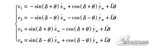 这样,就可以将机器人整体期望速度,解算为到4个轮子分别的速度,把数据传送到控制器中,就可完成对机器人的控制。