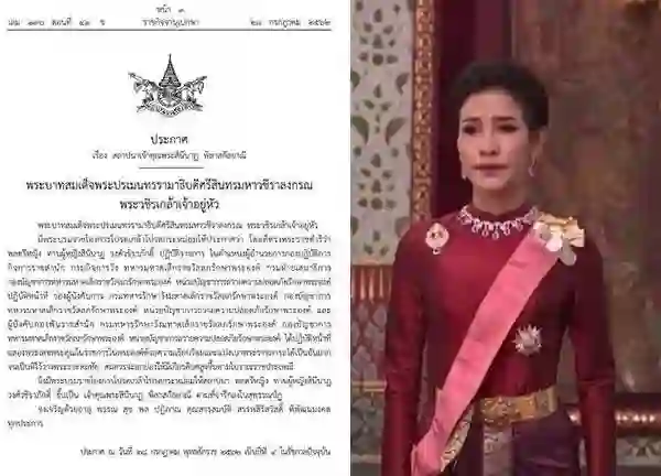 值得注意的是,现泰国王后苏蒂达与诗妮娜均出身皇家卫队。就在诗妮娜被“册封”前三个月,泰王举行了大婚。当时,41岁的皇家卫队副司令官苏蒂达上将被封为王后。