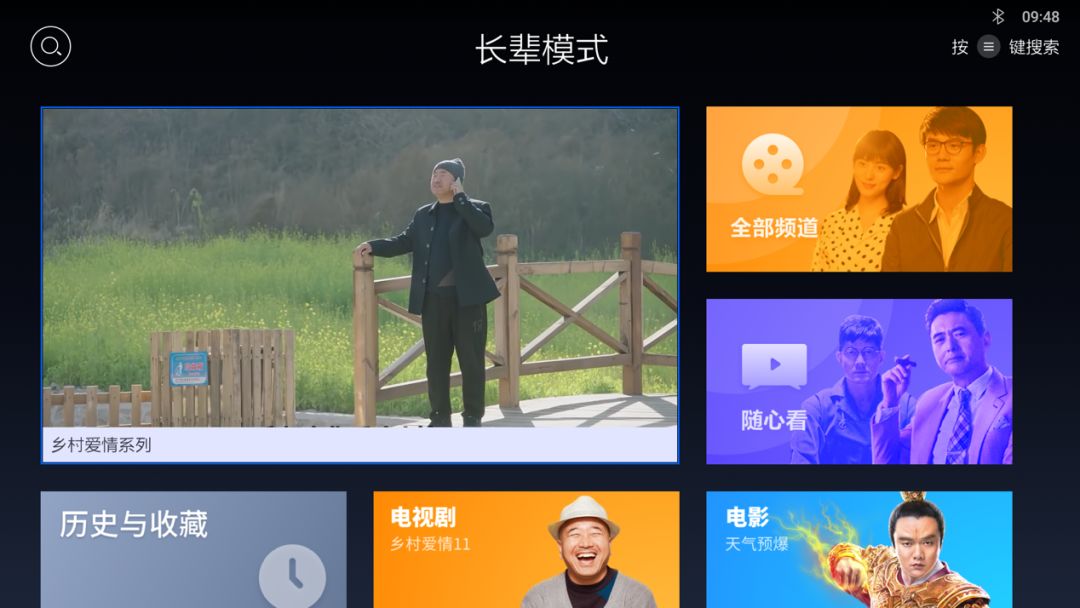 在长辈模式下,其风格就是大色块,大字,默认的视频流都是目前老人们比较喜欢的。