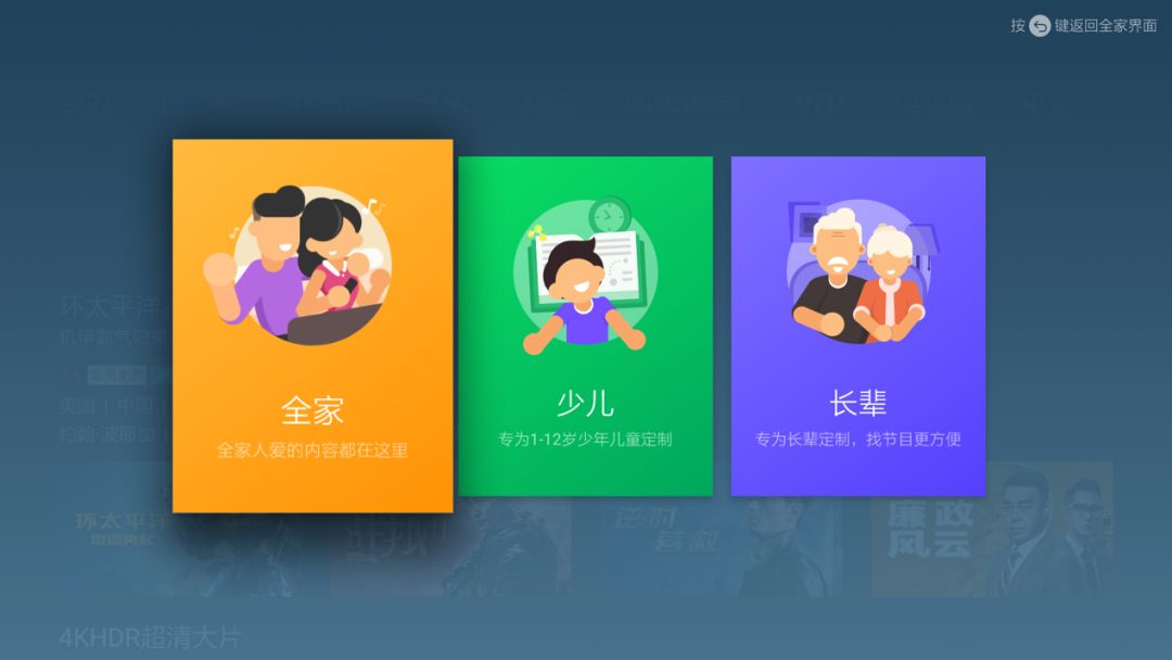 系统设置有全家、少儿以及长辈模式。