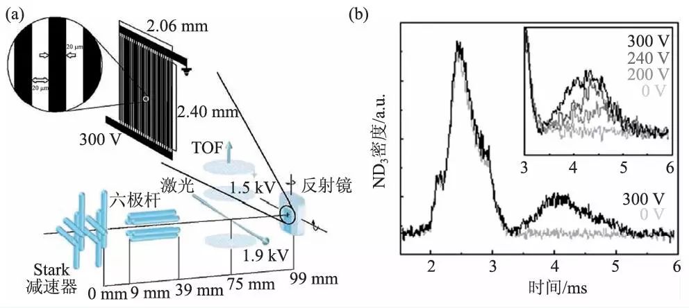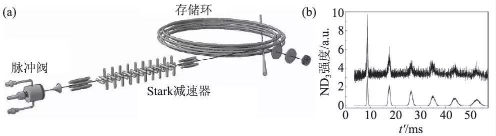 图12 ND3分子静电存储环的(a)实验装置与(b)结果