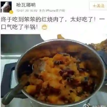 直到2012年,她发了一条微博,分享男友王石在纽约为她做的红烧肉:“终于吃到笨笨的红烧肉了,太好吃了!一口气吃了半锅。”