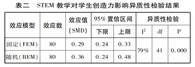 异质性检验是防止因存在异质性而无法合并效应值。研究采取统计量方法判断样本的异质性程度。通常,≥75%时采用随机效应模型,0≤≤75%时采用固定效应模型消除异质性,以防研究结果出现偏差(Borenstein et al.,2009)。42项元分析样本的异质性结果(见表二),故本研究采用随机效应模型消除样本的异质性,以保证分析结果的科学性。