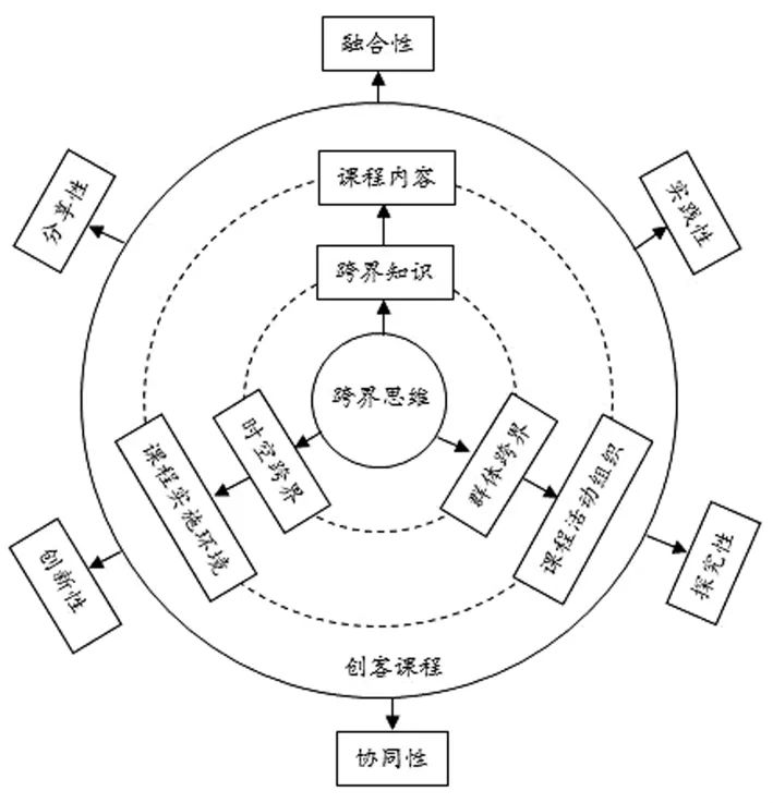 (6)课程评价。课程评价应采取多元化的评价体系,在评价内容上,不仅要关注学生对跨界知识的理解和运用,还要关注学生的批判性思维、沟通能力、协作能力、创新创造能力的提升;在评价方式上,采用学生自评与互评相结合的方式;在评价目标上,不仅注重学生完成的结果,而且关注学生在学习过程中的态度、参与程度、沟通交流、团队协作等;在评价主体上,不仅包括教师,还包括学生和学习伙伴。