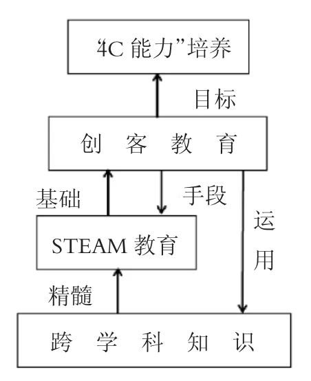 图2 “4C能力”、STEAM教育、创客教育的关联
