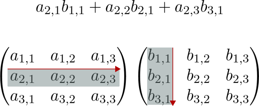 矩阵最重要的运算是矩阵乘积。通常,矩阵 A、B 以及乘积 AB 表示为: