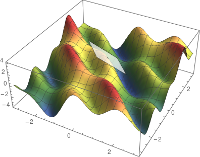 在单变量中,导数是切线的斜率。那么在此应该如何定义切线呢?表面上的一个点处不只有一条切线,而是多条。这些切线中有两条特殊的切线:分别为平行于 x-z 平面的切线和平行于 y-z 平面的切线。