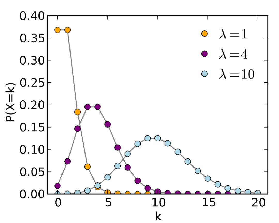 泊松分布的概率质量函数。图源:https://en.wikipedia.org/wiki/Poisson_distribution