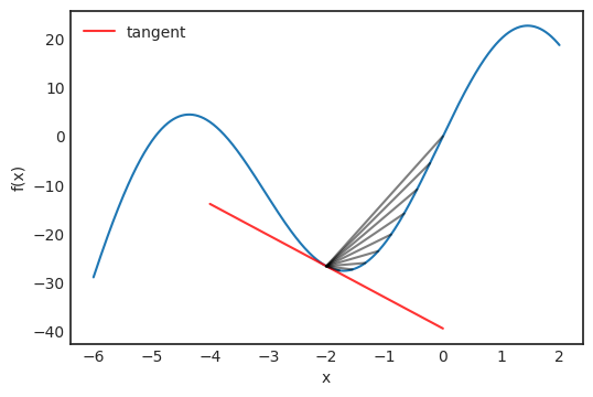 在极限定理中,这也是点 x 处切线的斜率。下图说明了这个概念: