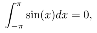 在 -π到π的区间内,正弦函数曲线下的有符号面积。