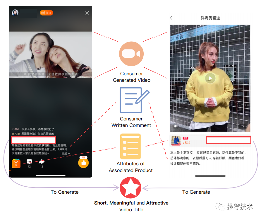 说到这,你以为本公众号要沦陷为一个画饼号了么?错!今天我们仍要看一篇技术文章,不过会更多从业务视角来看待这个问题——为买家秀视频生成短标题。这是阿里巴巴KDD 2020的一篇文章[1]。咦,这不是做了很多年的视频描述问题么?敲黑板,我们说的是买家秀,大家知道买家秀是什么概念么?
