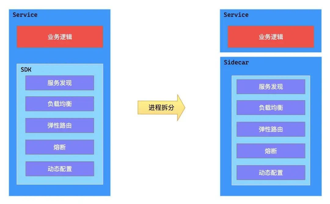 通过抽象出与功能相关的共同基础设施到一个独立进程,降低了微服务代码的复杂度;