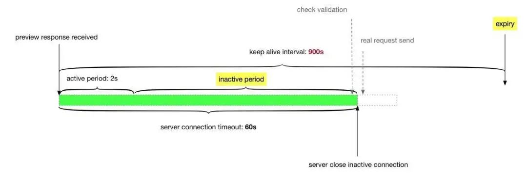 HttpClient 连接池创建的连接初始默认的有效期 (timeToLive) 是 900s,后续收到响应后会尝试从响应的头信息中获取 KeepAlive: timeout=xxx 服务端连接的保持时间,然后再更新连接的有效期。后续请求从连接池获取连接后,会再次检查有效性,避免使用过期的连接发送请求。