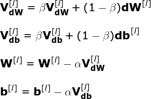 如以往一样,我们使用反向传播计算网络各层的 dW 和 db 值。然而,这次我们没有直接使用计算梯度来更新神经网络参数,我们首先计算 VdW 和 Vdb 的中间值。然后在梯度下降中使用 VdW 和 Vdb。值得注意的是,实现该方法需要记录迭代过程中的指数加权平均值。大家可以在 Github 中看到全部过程。