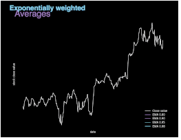 图 5. 不同 β值的指数加权平均(EWA)图示。