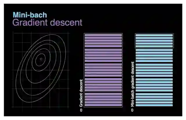我们首先尝试解决上一节提到的最后一个问题──低效性。尽量向量化通过单次处理多个训练样本来加速计算,但在使用百万量级的数据集时优化过程还是需要花费很长时间。此处,我们试用一个简单的方法──将完整数据集切分成许多小批量以完成后续训练。小批量梯度下降的可视化动图见图 3。假设左图的等高线象征需要优化的成本函数。如图所示,由于新算法的待处理数据较少,它能够快速完成优化。我们再看看两个模型的移动轨迹对比。当噪音较少时,梯度下降采取较少步和相对较大的步长。另一方面,小批量梯度下降前进更频繁,但由于数据集的多样性,噪声更多。甚至可能在某次迭代过程中,算法移动的方向与预计方向相反。不过,小批量梯度下降通常一直朝向最小值移动。