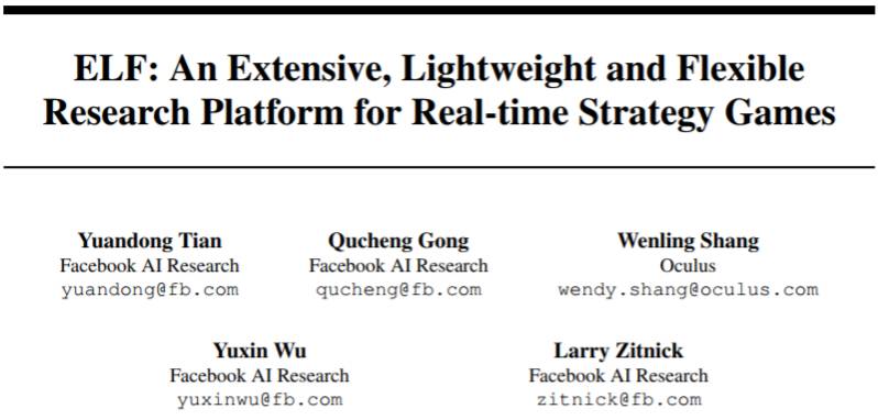 论文:ELF: An Extensive, Lightweight and Flexible Research Platform for Real-time Strategy Games
