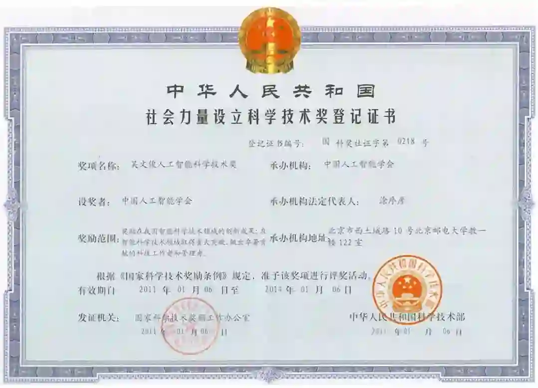 吴文俊人工智能杰出贡献奖授予在智能科学、技术和工程领域取得重大突破,贡献巨大,国际上有较大影响力的智能科技工作者。