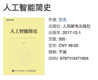 今年的这一奖项授予了人民邮电出版社出版的《人工智能简史》一书,作者是尼克(张晓东)。