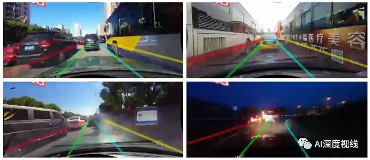 从上图可以看出,车道线检测要面临很多的难题,比如车辆的遮挡、各种复杂光线的影响,甚至有时候根本看不到车道线。