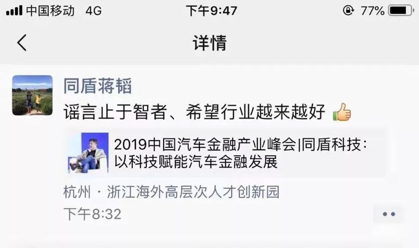 9月16日晚间,一篇名为《独家:同盾科技爬虫部门解散,无意间掀起行业整治风暴》的自媒体文章在网上流传。随即,同盾科技创始人蒋韬在微信朋友圈做出回应,并以定位杭州的方式反击了文中“出国避风头”的报道。