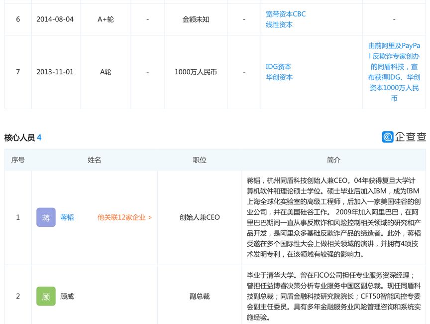 公开资料显示,同盾科技于2012年10月在杭州成立,蒋韬为法人代表人、创始人、董事长兼CEO。公司成立至今,共获得了7轮融资,估值已达20亿美元。