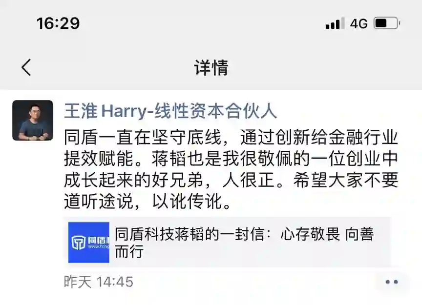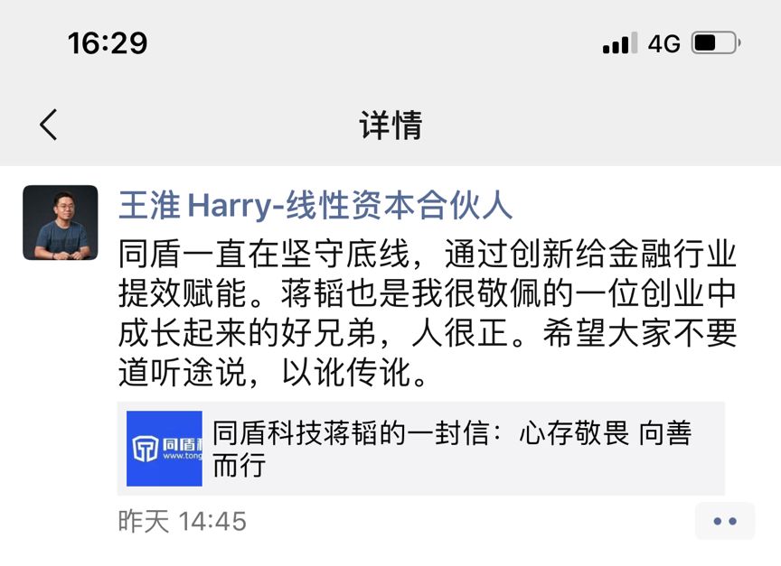 之后,网上仍流传着一篇篇“倒同之声”,同盾科技创始人蒋韬再次出面,发布公开信《心存敬畏 向善而行》(已附文末),并指出,“背后有推波助澜的幕后黑手”。