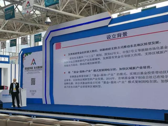 首钢基金-京西资本总裁助理刘林出席哈尔滨双创周活动,并介绍了黑龙江科技厅、首钢基金、哈创投以及创业公社拟设立的首钢东北振兴基金,以及首钢基金旗下创业公社在哈尔滨以“基金+产业链服务+基地”模式运营的众创空间。